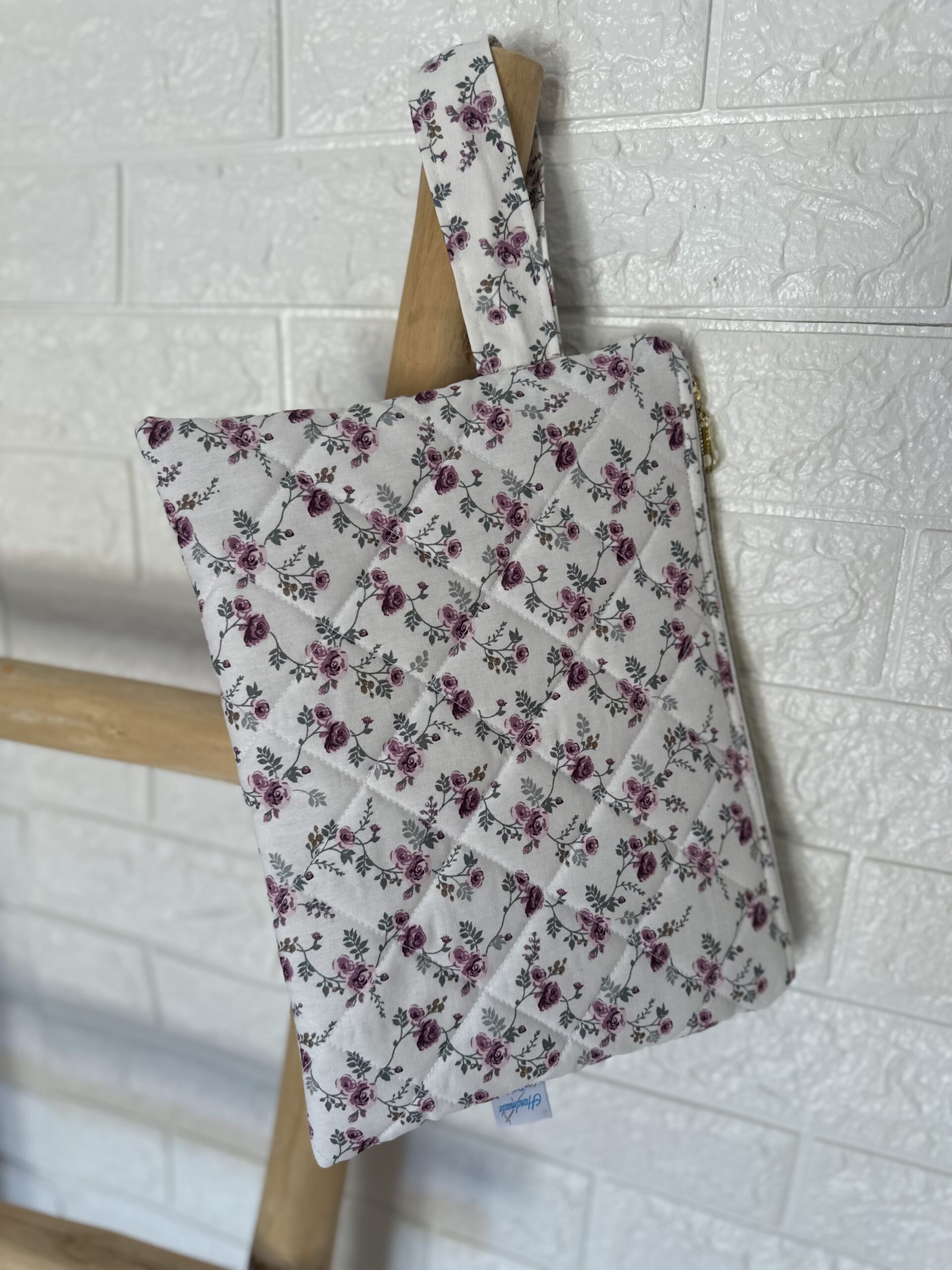 Τσαντάκι πλακέ με λουράκι στο πλάι. Ιδανικό για την παραλία για τα προσωπικά σας αντικείμενα αλλά και για τις εξόδους σας. φτιαγμένο από 100% βαμβακερό ύφασμα. Μπορεί να γίνει προσωποποιημένο με κέντημα.